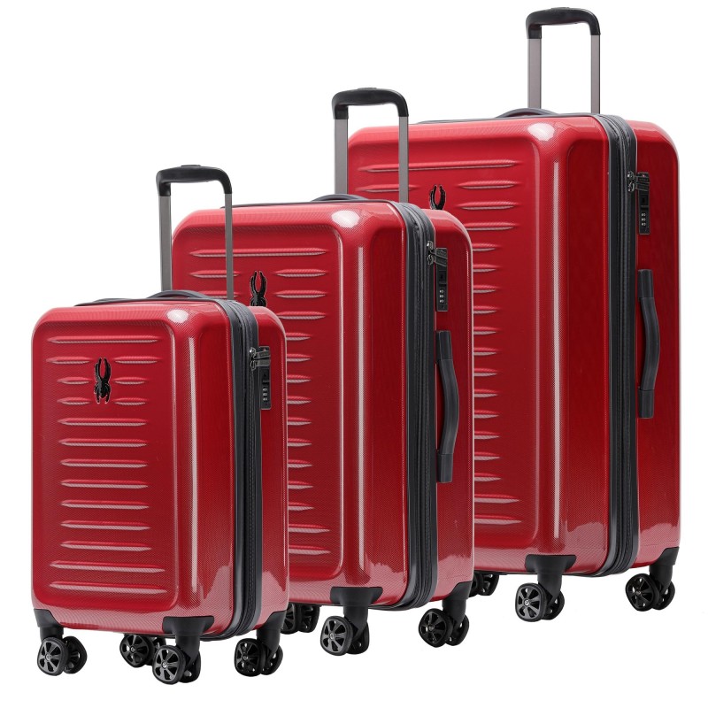 • Durable Construction: Constructed of lightweight and durable 100% ABS/PC shell that is extremely resilient to cracking or breaking; The 3 piece set consists of a 20" upright carry on a 25" midsize upright/checked bag and a 29" full size upright/checked bag • Spacious Interior: The well designed roomy interior offers two packing compartments with compression straps, mesh divider, and multiple accessory pockets for added organization • Convenient Design: Two carry handles provide maximum convenience when lifting a packed case, and this suitcase also has an expandable design that allows a full 2.5” expansion for additional packing capacity • Smooth Mobility: Equipped with Shark Wheels, dual 360 spinner wheels provide maximum durability while ensuring a smooth and quiet ride • Enhanced Security and Warranty: Complete with a TSA-approved combination lock to secure your belongings and allow TSA access, all Spyder Luggage comes with a 5 Year Limited Warranty for peace of mind
